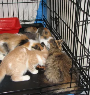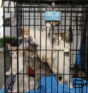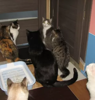 В приюте сейчас проживает почти 50 котов и кошек, от долгожителей "кому за 20" до подростков. Выброшенные нерадивыми хозяевами или родившиеся в подвале, осиротевшие или случайно потерявшиеся - все они получили тепло, миску еды и внимание.